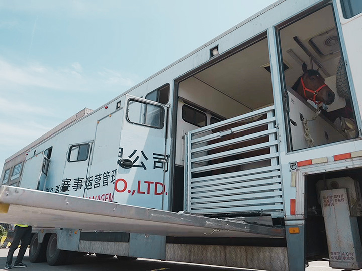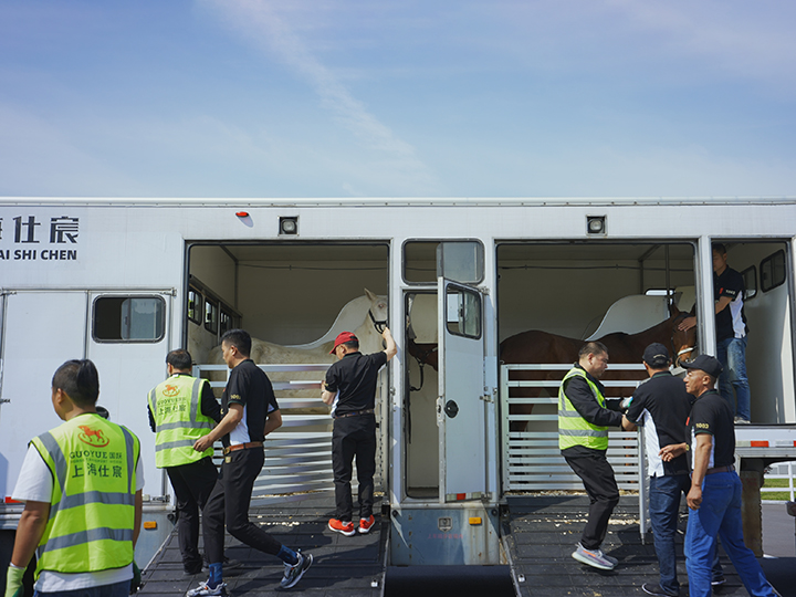 • 半掛9匹斜載運(yùn)馬車(chē)